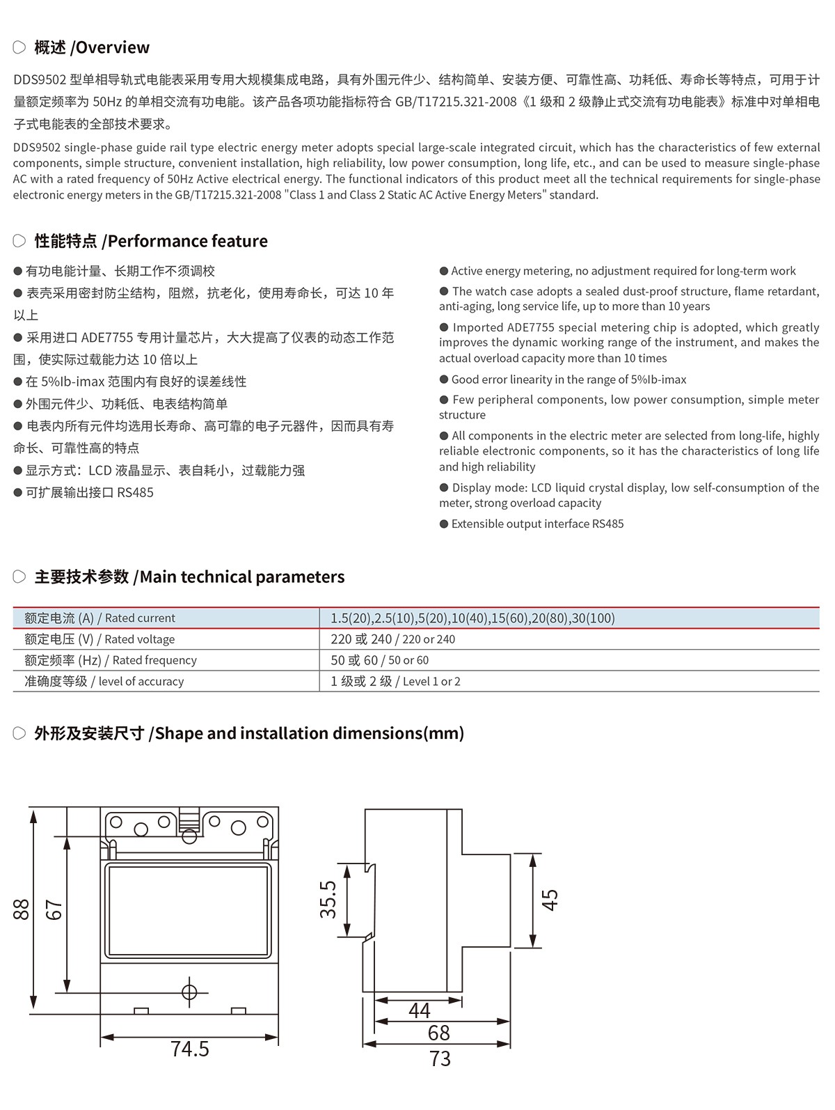 DDS9502型单相导轨式电能表